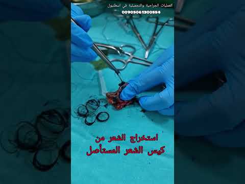 استخراج كمية كبيرة من الشعر من داخل كيس الشعر المستأصل